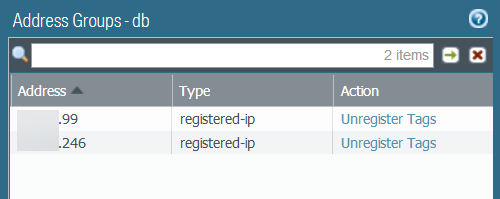column of a dynamic address group. Panorama displays a list of IP addresses added to that dynamic address group based on the match criteria you specified.