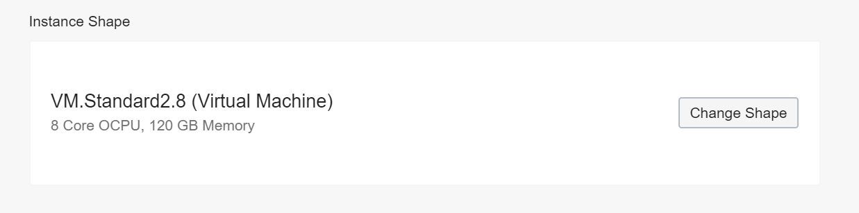 - Select the shape with the number of CPUs, amount of RAM,