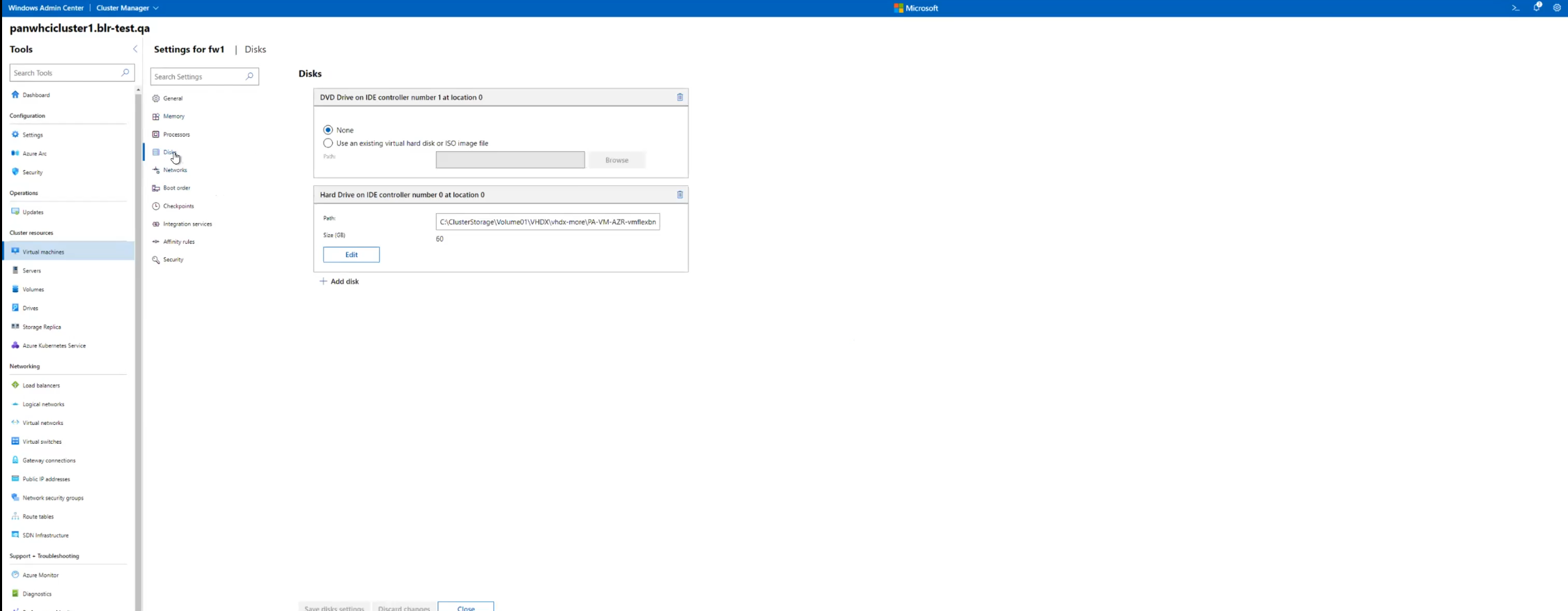 - Log in to Windows Admin Center.Select HCI Cluster and go to Virtual Machine > Settings.