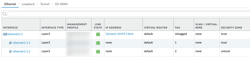 interfaces on the firewall.- On the VM-Series firewall web interface, select NetworkInterfacesEthernet.
