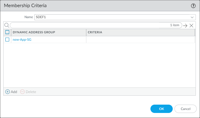 On the Membership Criteria window, click OK to finish or Add to specify additional dynamic address groups.