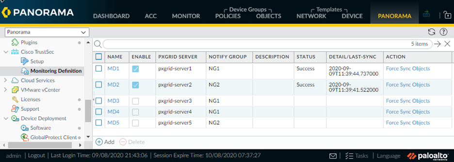 Each Panorama with the Cisco TrustSec plugin