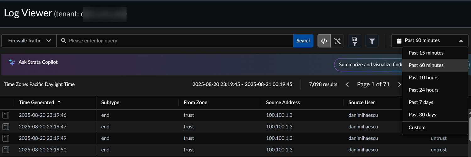 Press enter in the query builder to view the log records and their details in the table. You can organize the columns in the log table based on what is relevant to you.(Optional) Save the preferred Explore settings you frequently use in your profile. You can save settings such as time range, log table view, saved queries, and the Directory Sync Service instance.(Optional) Export all log types to a compressed CSV file in GZ format. The exported logs will always display UTC, irrespective of the time zone you selected when you exported the logs.