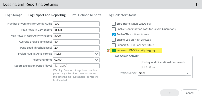 For PAN-OS 12.1 releases and later, DNS Security supports a log type specifically for