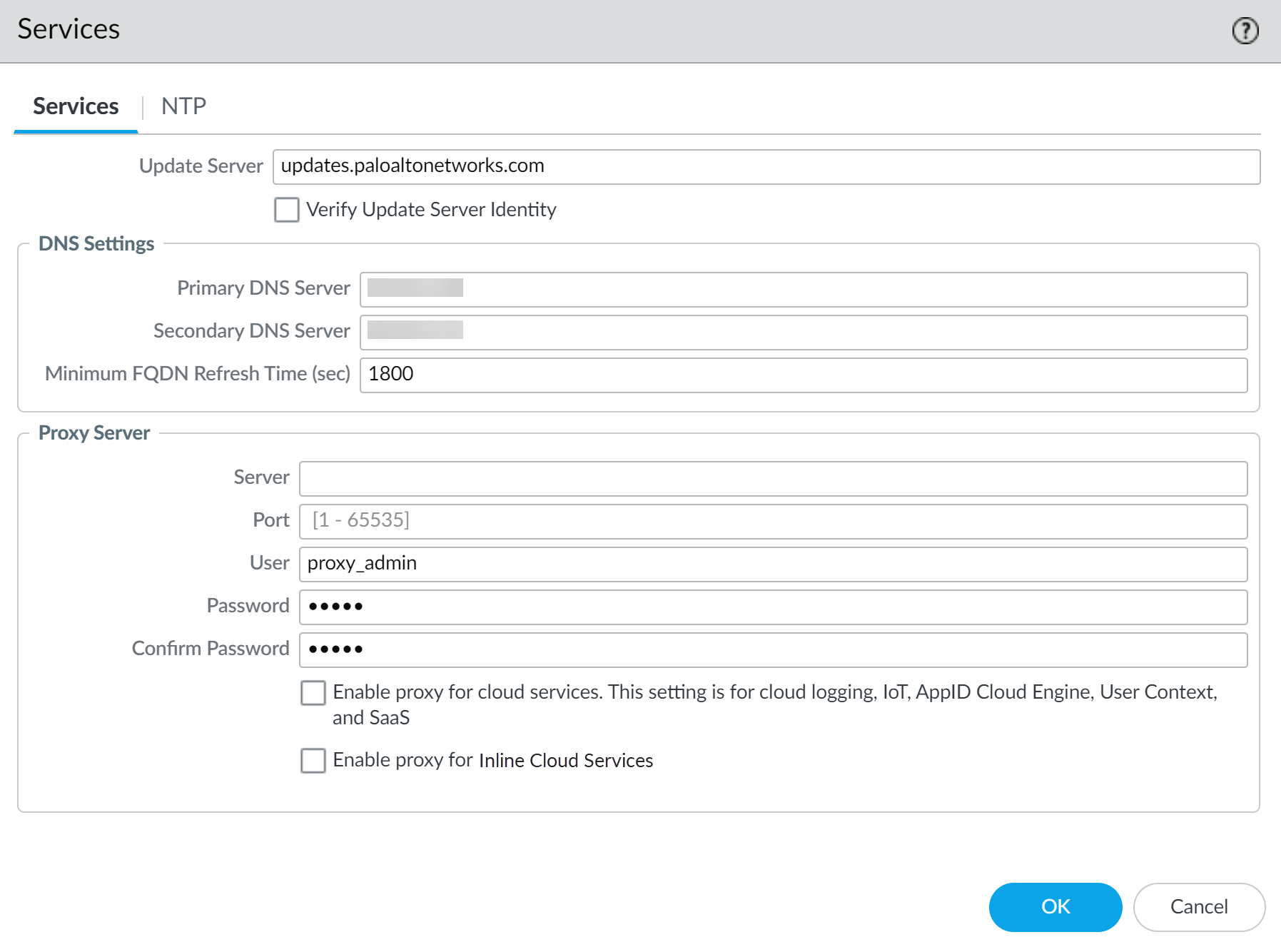 - Select PanoramaSetupServices and edit the Services settings.Configure the proxy server settings.