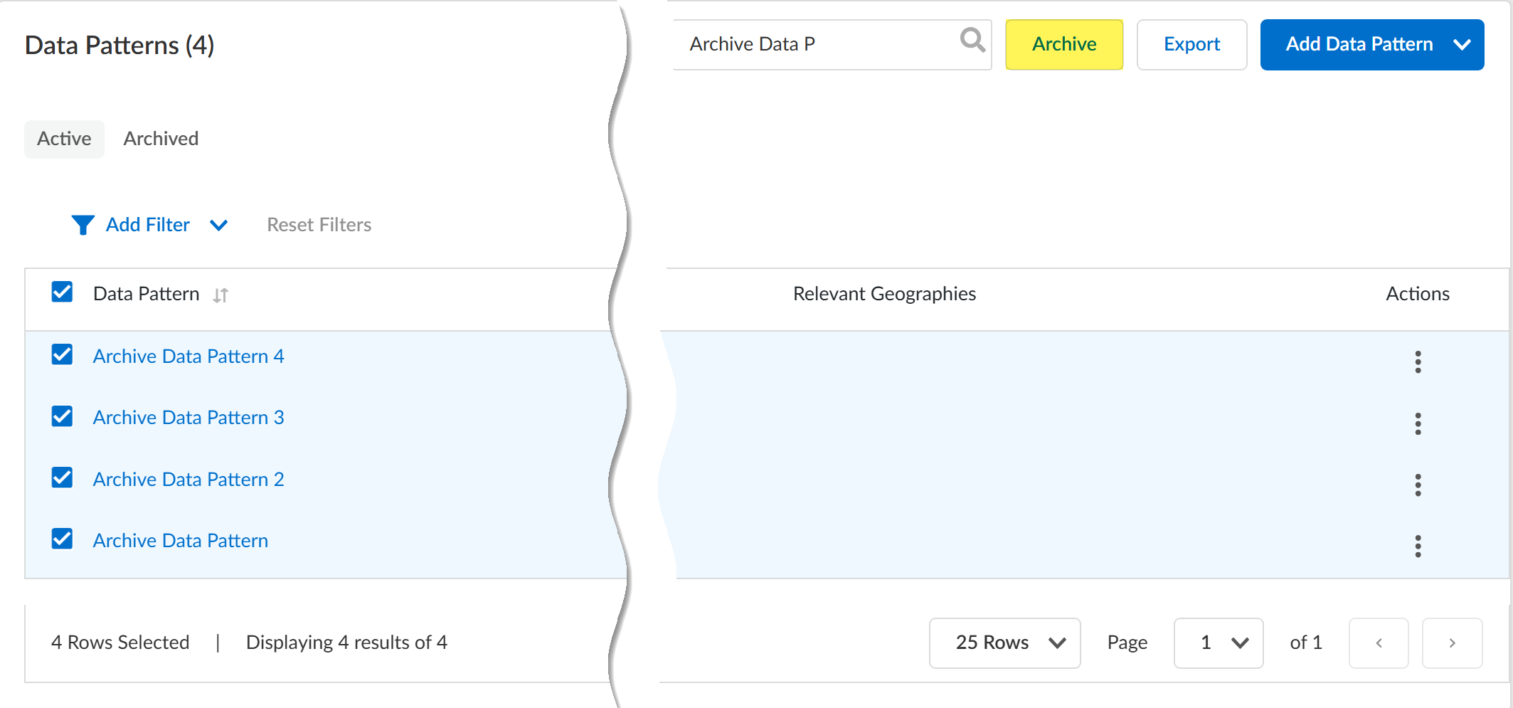 - Archive Multiple Data Patterns—Select the data patterns and Archive them.