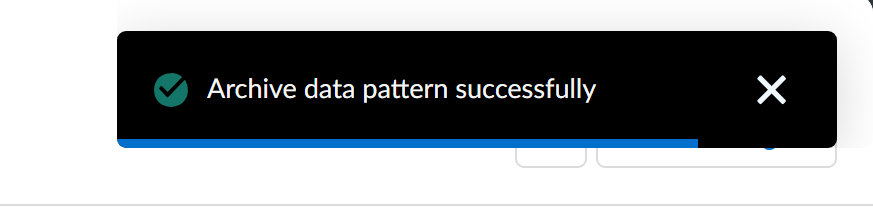 You are prompted to confirm you want to archive the data patterns. Click Archive to confirm.If you selected one or more data patterns to archive, clicking Cancel deselects them.