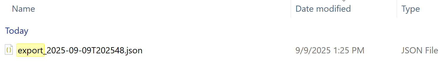 Enterprise DLP begins preparing the JSON configuration file and then downloads it to your local device.The configuration file has the following naming convention: export_YYYY-MM-DDTHHMMSS.json. You can rename the file as needed.