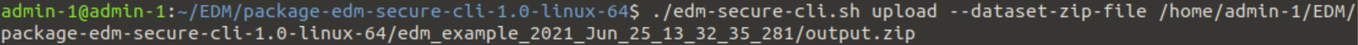 Verify that the EDM data set uploaded successfully to Enterprise DLP.The EDM CLI app displays a progress bar and success message to notify you whether the upload is successful.During the upload process, the EDM CLI app connects to Enterprise DLP to verify that you created the output.zipfile using a supported EDM CLI app version. The upload to Enterprise DLP fails if you created the output.zip file using an unsupported EDM CLI app version.