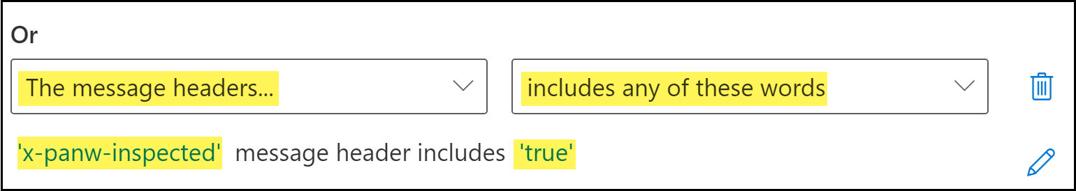 - Click Enter text to set the message header to x-panw-inspected.