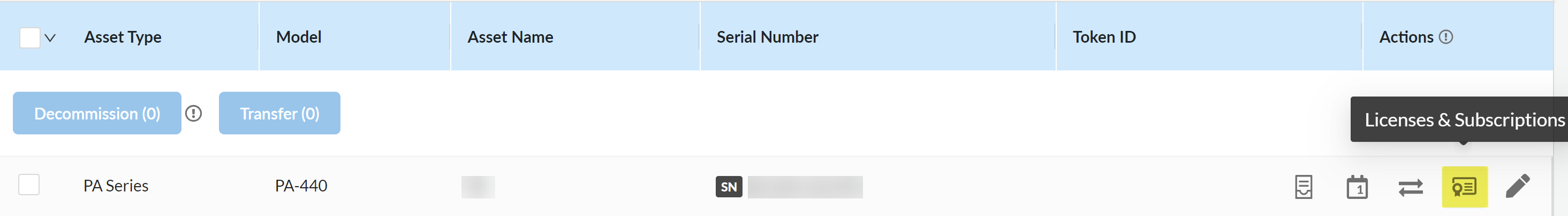 Activate your Enterprise DLP license for your managed firewalls.Repeat this step for all managed firewalls using Enterprise DLP.- Log in to the Palo Alto Networks Customer Support Portal.Select AssetsLicenses & Subscriptions and locate the managed firewall for which you want to activate Enterprise DLPIn the Actions column, click Licenses & Subscriptions.