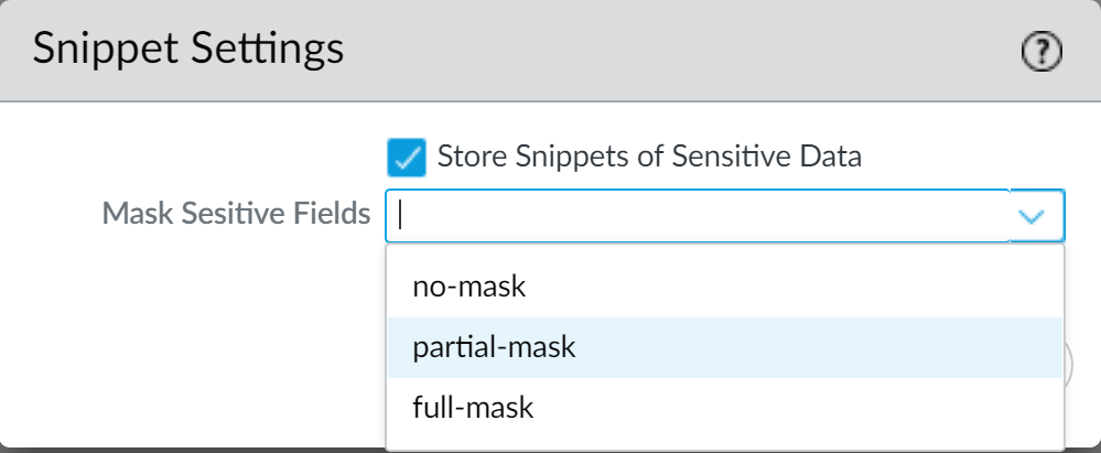 Configure the Enterprise Data Loss Prevention (E-DLP) snippet settings on your Panorama® management server to specify if and how snippets are stored.- Log in to the Panorama web interface.Select PanoramaDLPConfiguration and edit the Snippet Settings.Check (enable) Store Snippets of Sensitive Data to store the snippets of sensitive data that match your data patterns in the DLP cloud service.Configure how to Mask Sensitive Field for storage in the DLP cloud service.