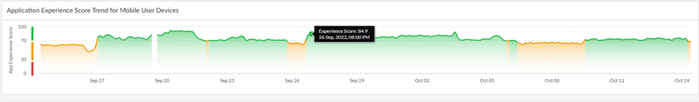 View the experience score trend during the selected Time Range for a specific application across all mobile users.