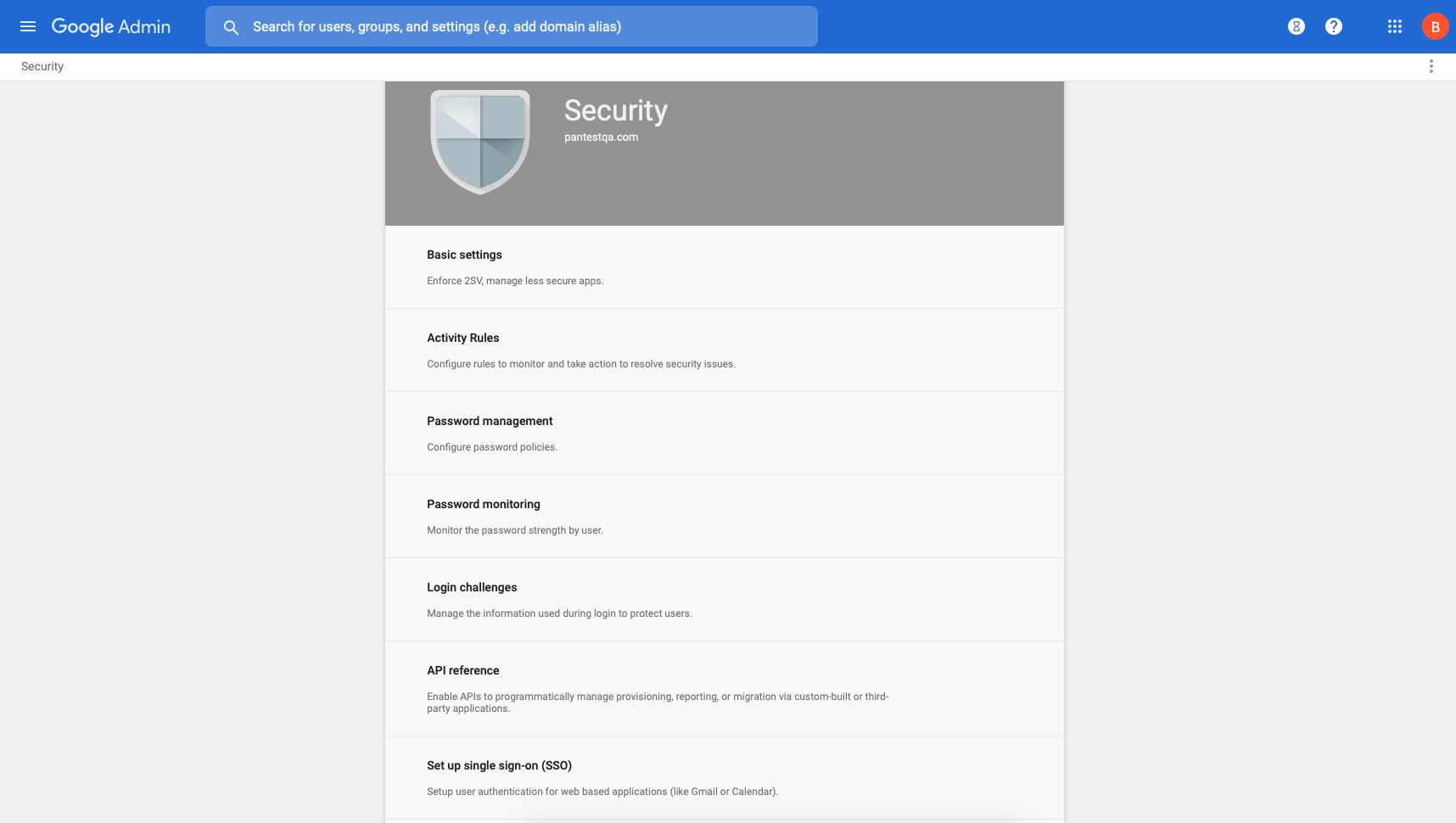 On the Advanced tab, Add an Allow List to select the users and groups that are allowed to authenticate with this profile. The all option allows every user to authenticate with this profile. By default, the list has no entries, which means no users can authenticate.Make sure the username in the Allow List matches the username returned from the SAML IdP server.Click OK.Commit the configuration.(Chromebooks only) Enable SAML SSO for Chromebooks.These steps allow you to set up SAML SSO for the GlobalProtect app for Android on Chromebooks.- Sign in to the Google Admin Console and select Security.
