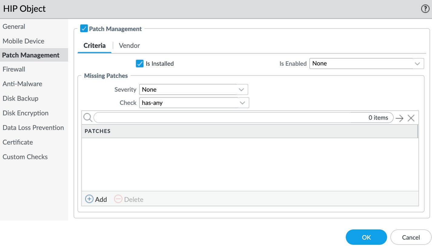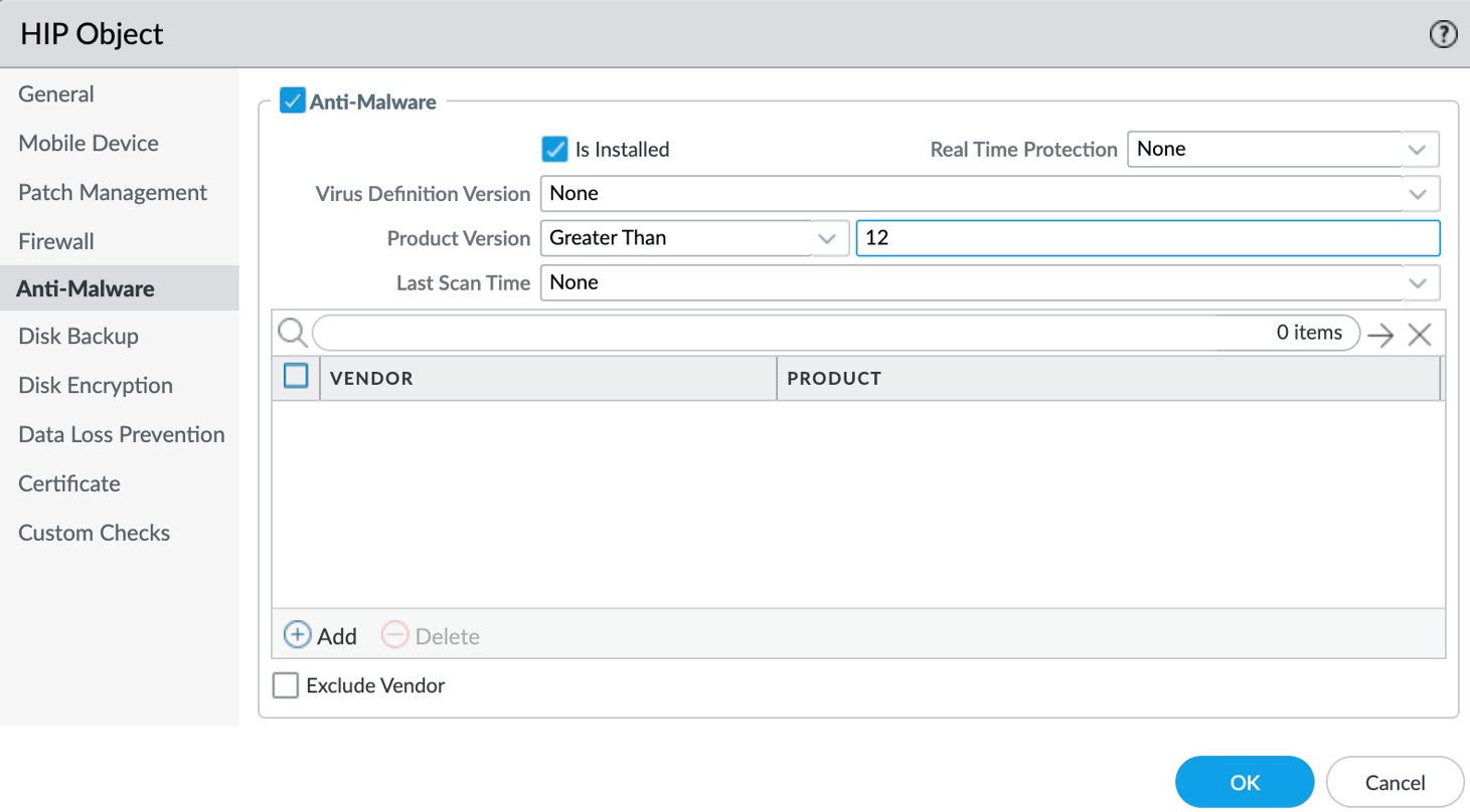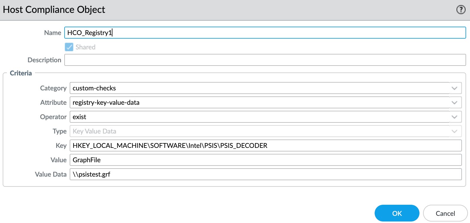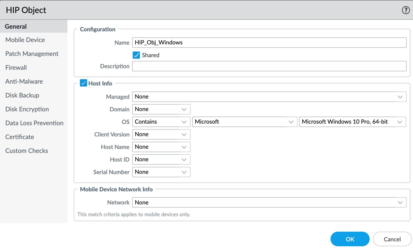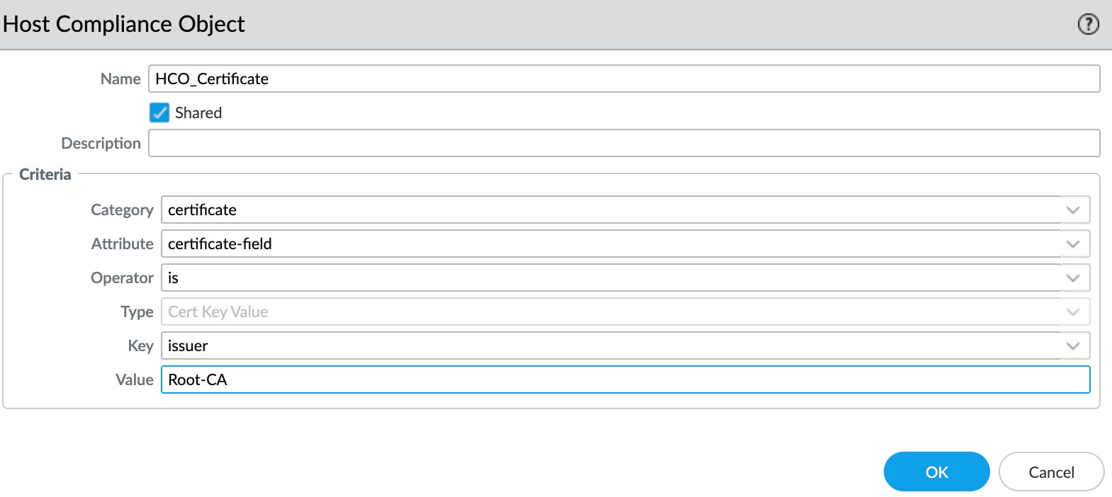 - On the firewall(s) hosting GlobalProtect gateway(s), select ObjectsHost Compliance Objects and then Add a new HCO.Enter a Name and Description for the object.Define the specific host criteria you want to check by selecting: