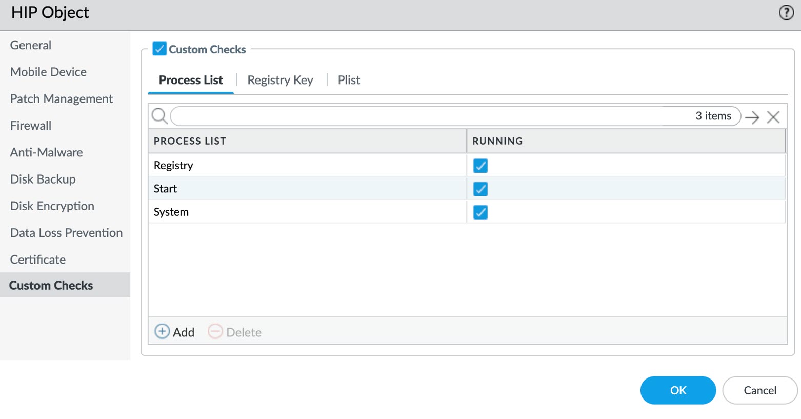 Custom Checks (Process List)HIP Object (Custom Checks (Process List))