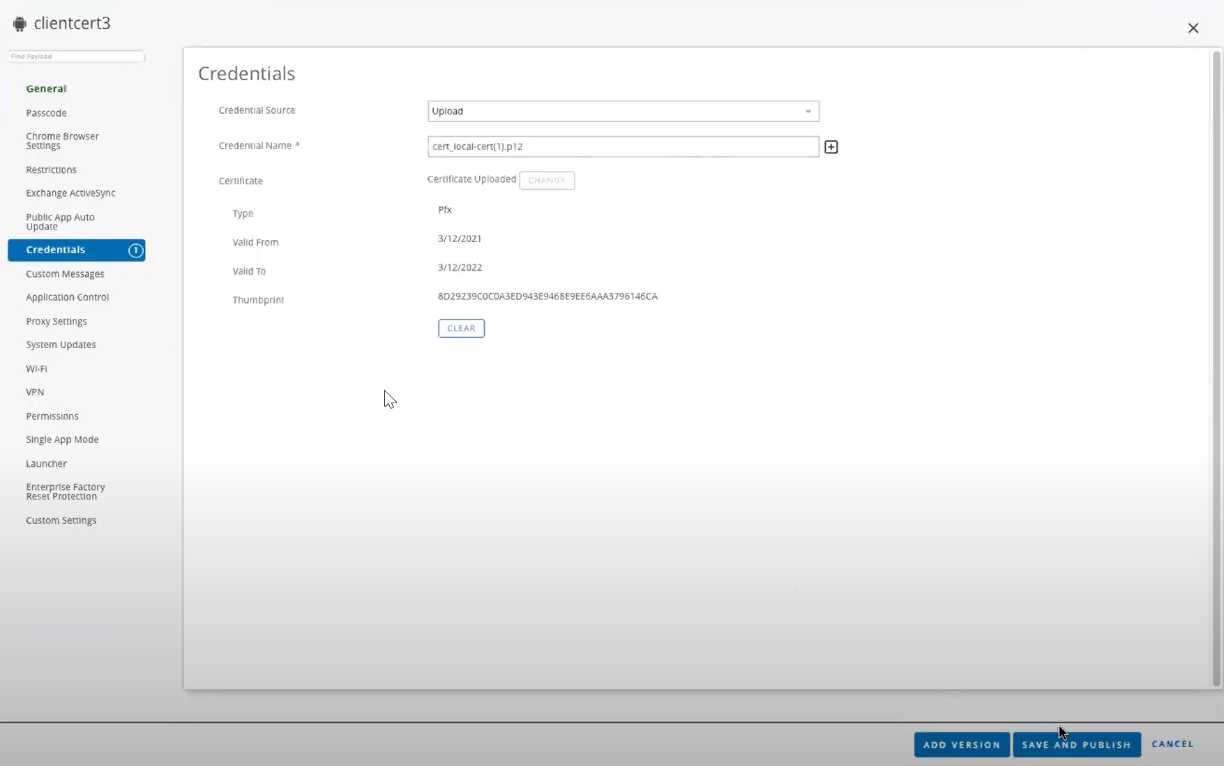 certificate on their Android endpoint. As a result, the Choose Certificate pop-up
