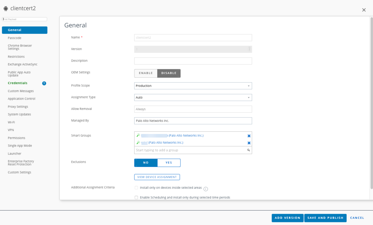 Delegate GlobalProtect Certificates for Android Endpoints Using Workspace ONE