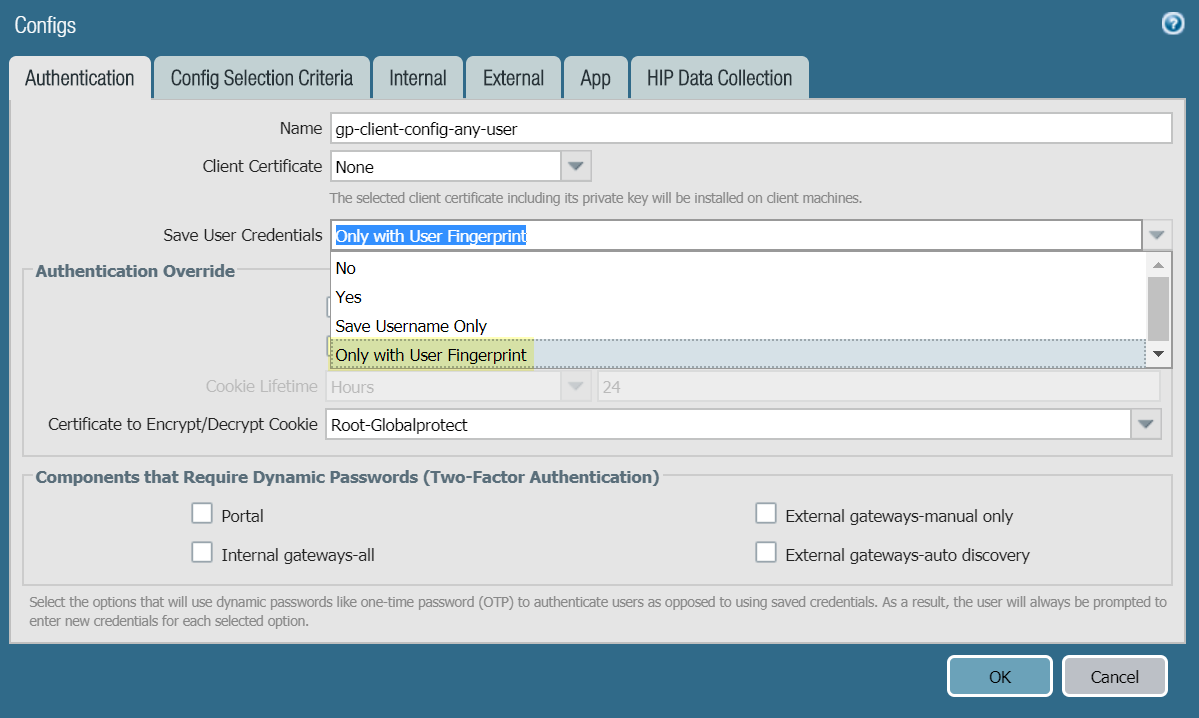 you change a fingerprint, GlobalProtect seamlessly uses the updated