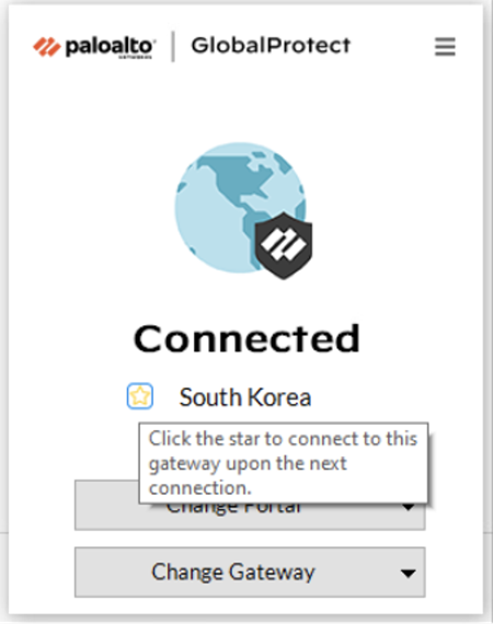 - Launch the GlobalProtect app by clicking the system tray icon. The status panel opens.(Optional) If you are logging in to the GlobalProtect app for the first time, enter the IP address or domain of the GlobalProtect portal, and then click Connect.(Optional) If multiple portals are saved on your app, select a portal from the Change Portal drop-down. By default, the most recently connected portal is pre-selected from the Change Portal drop-down.(Optional) By default, you are automatically connected to the Best Available gateway, based on the configuration that the administrator defines and the response times of the available gateways. To connect to a different gateway, click the Change Gateway drop-down and then use one of the following options: