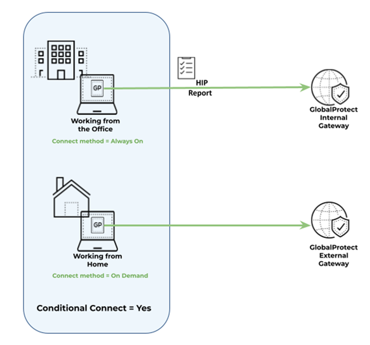 With Conditional Connect, GlobalProtect uses internal host detection (IHD) to determine