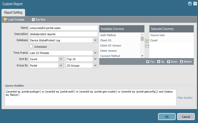 ((eventid eq 'portal-prelogin') or (eventid eq 'portal-auth') or (eventid eq 'portal-gen-cookie') or (eventid eq 'portal-getconfig')) and (status eq 'failure')