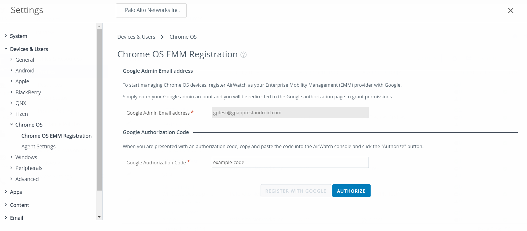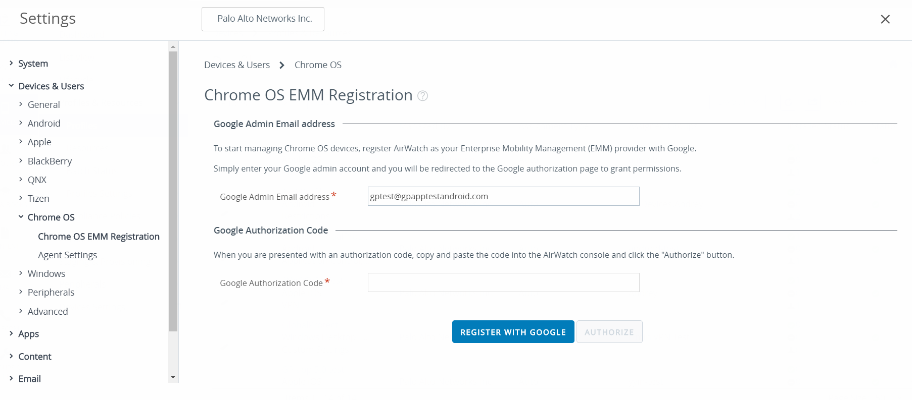 To manage Chromebooks using Workspace ONE, you must register Workspace ONE with the Google Admin console.