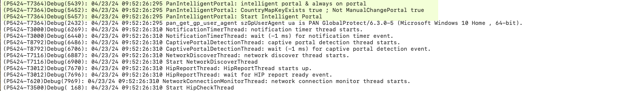 GlobalProtectLogs.tgz file. See the highlighted rows in the