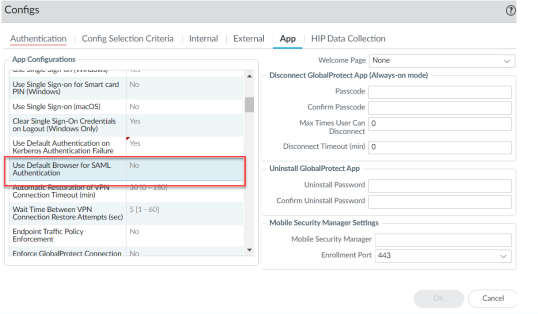 The system browser is the default browser for Cloud Identity Engine SAML Authentication. Follow the steps below to use the embedded web-view: - Disable the Use Default Browser for SAML Authentication