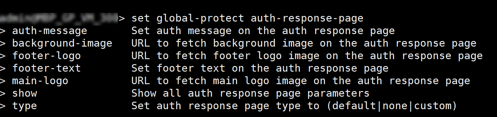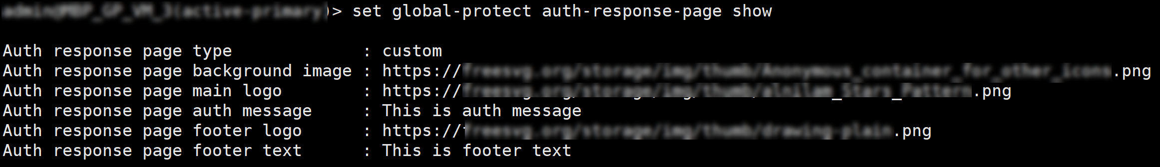 Use the following CLI command to view the current authentication response page settings:set global-protect auth-response-page <show>
