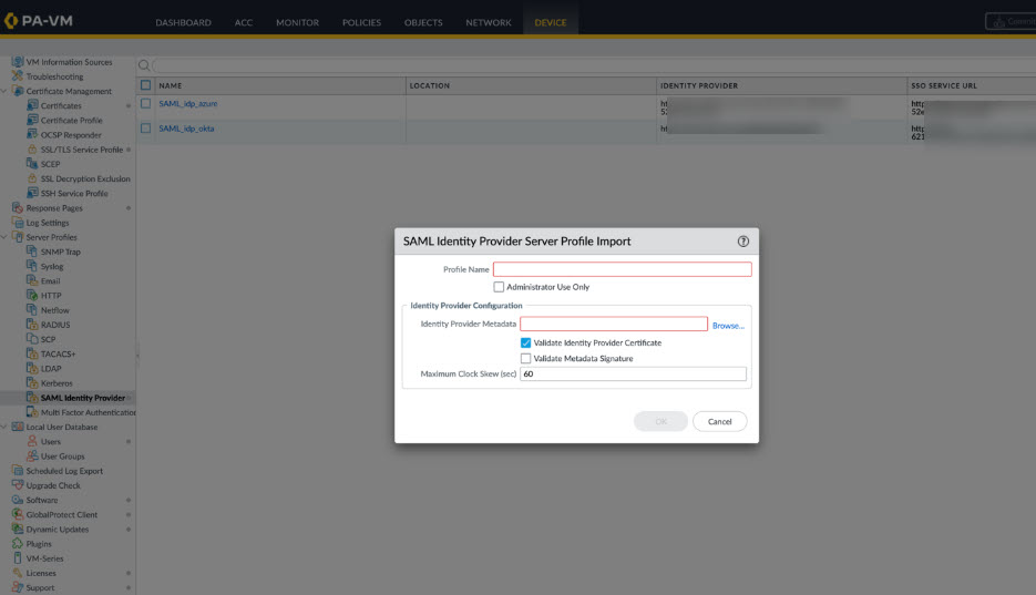 firewall validates IdP messages (default is 60; range is 1 to 900). If the