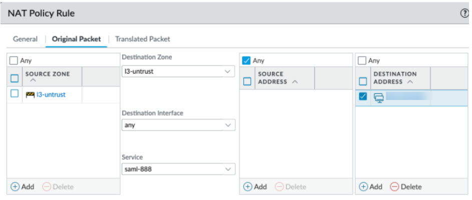 On the Translated Packet tab, select the GlobalProtect portal IP in