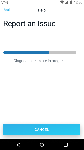 A message pops-up, confirming that the app is running diagnostic tests only if you selected the Run Diagnostic Tests and Include Diagnostic Logs check box.