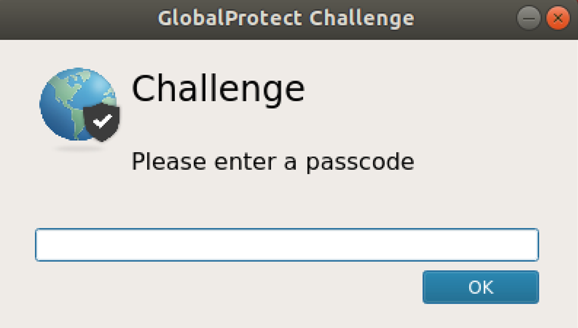 your configuration includes a challenge, the GlobalProtect app prompts