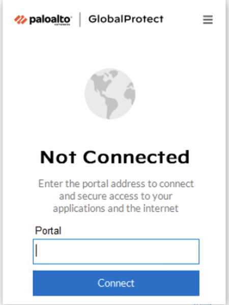 Enter the IP address or domain of the portal that your GlobalProtect administrator provided, and then click Connect.