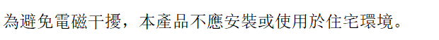 This product should not be installed or used in residential environments to avoid electromagnetic interference.