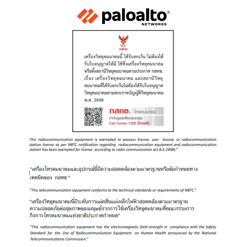 - Thailand Regulation for Radio Communication Equipment:This regulation applies to ION 1200-S-C5G-WW device only.