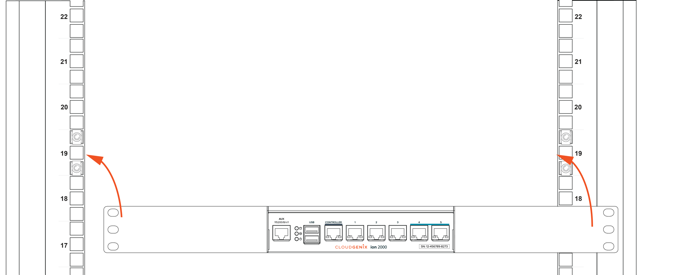 Attach the L-shaped brackets to the screw holes on either the front or back of the device.