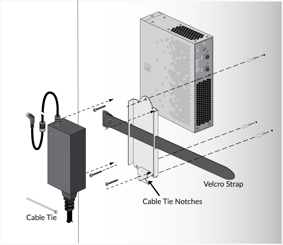 After you secure the power adapter to the bracket, mount