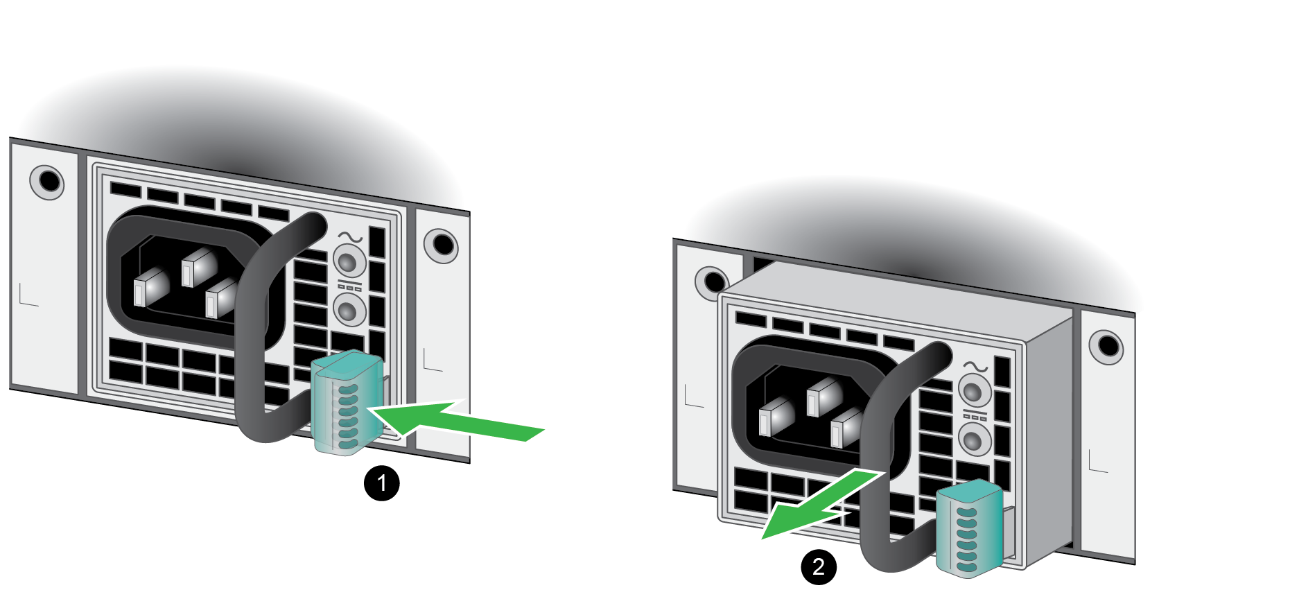 - Identify the failed power supply by viewing the System logs or by viewing the power supply status LEDs described in Interpret the PA-3400 Series Status LEDs.Remove the cord retainer that secures the power cord to the failed power supply and disconnect the power cord from the firewall.![]() Grasp the handle on the failed power supply and then simultaneously press the release lever to the left and pull the power supply outward to remove it. Grasp the handle on the failed power supply and then simultaneously press the release lever to the left and pull the power supply outward to remove it.![]() Remove the replacement power supply from the packaging and slide it into the empty power supply slot. Push the power supply all the way in until the release lever clicks and secures the power supply.Connect the AC or DC power cable(s) to the power supply input and secure it to the power supply using the cord retainer. Once the power supply powers on, the input and output LEDs on the power supply turn green. Similarly, the PWR LED and the power supply LED (PWR 1 or PWR 2) on the front of the firewall turn green. Remove the replacement power supply from the packaging and slide it into the empty power supply slot. Push the power supply all the way in until the release lever clicks and secures the power supply.Connect the AC or DC power cable(s) to the power supply input and secure it to the power supply using the cord retainer. Once the power supply powers on, the input and output LEDs on the power supply turn green. Similarly, the PWR LED and the power supply LED (PWR 1 or PWR 2) on the front of the firewall turn green.
