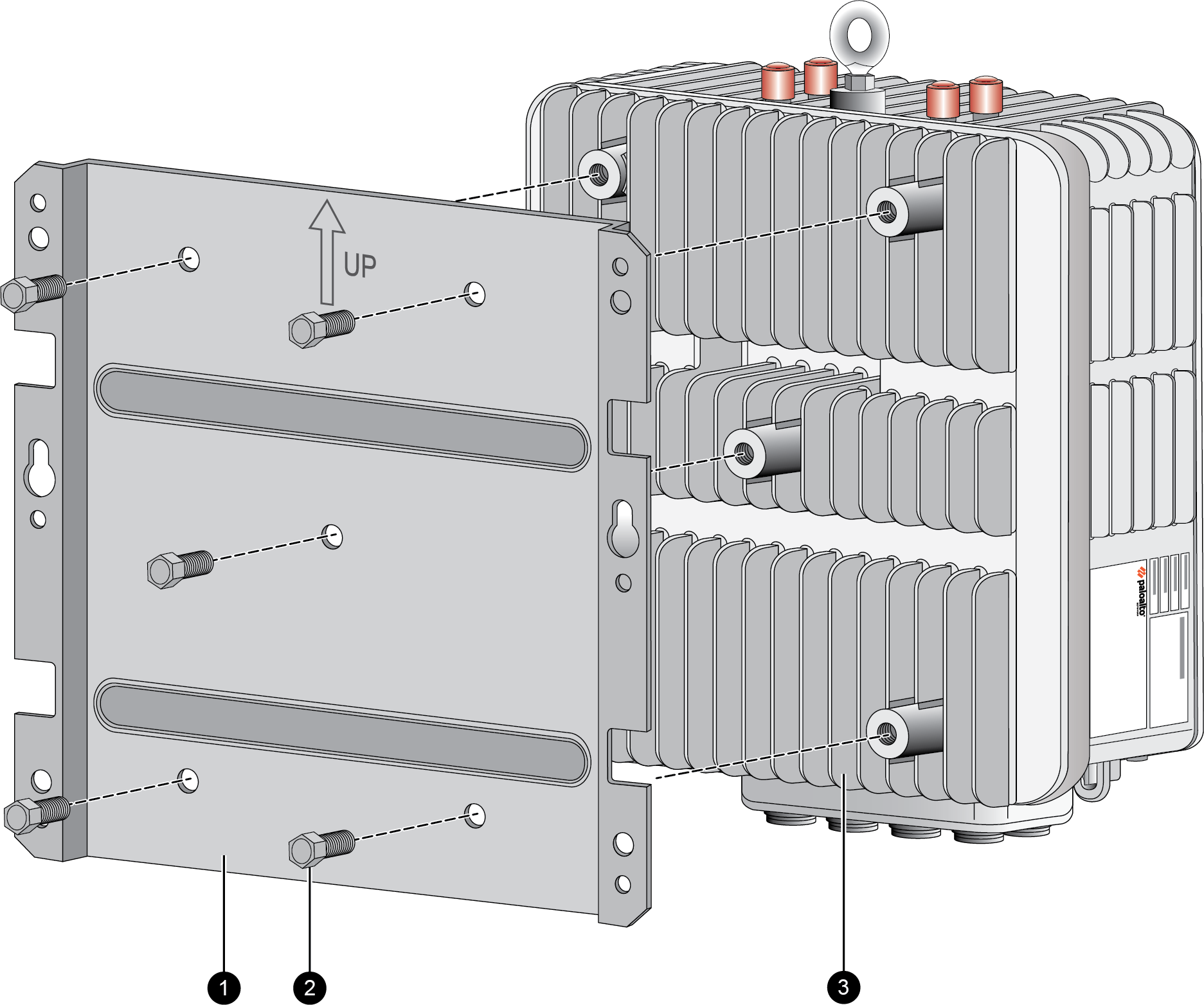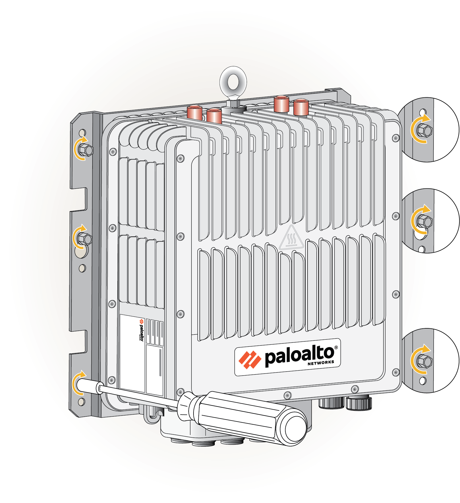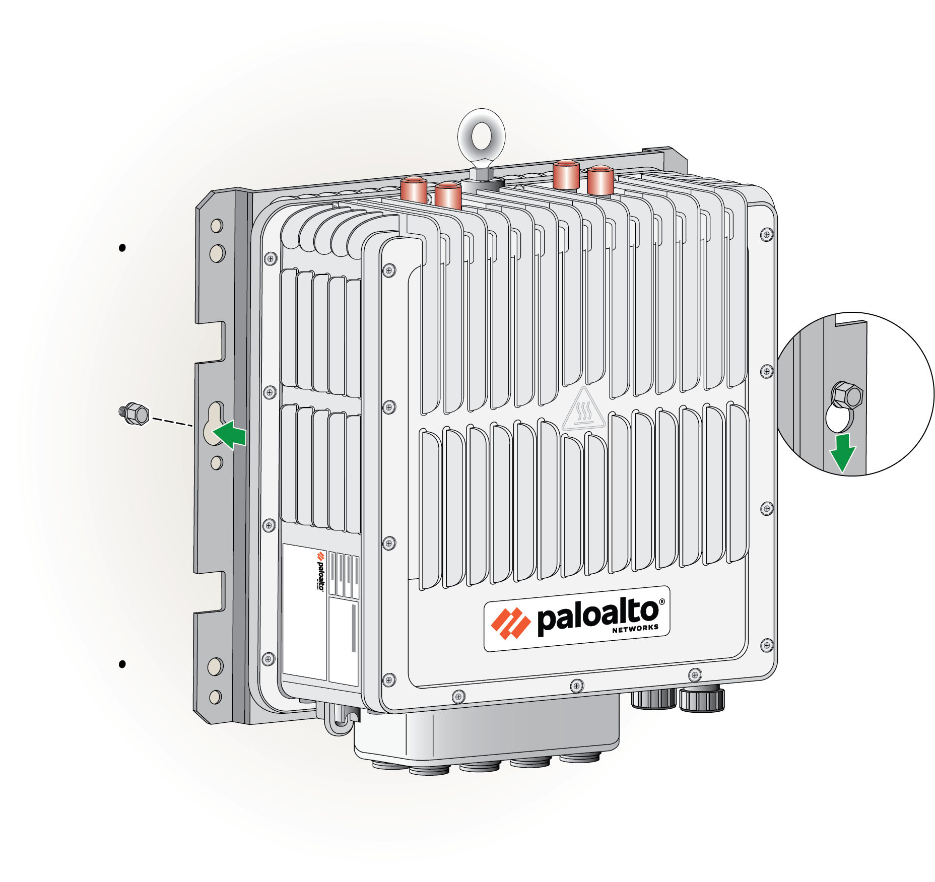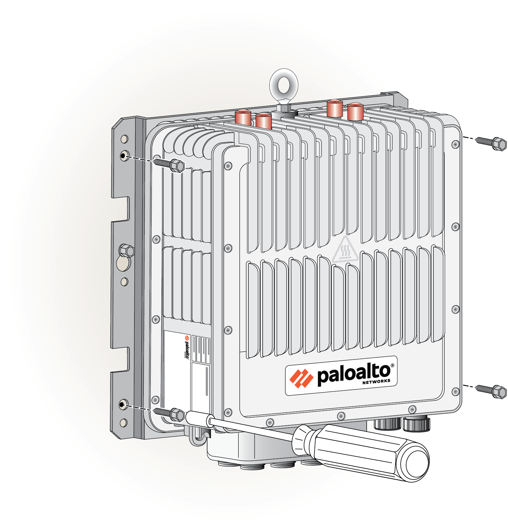 - Mark the locations on the wall that line up with the wall mount holes on the bottom of the wall mount.Ensure there are no building services (water, gas, or wiring) behind the wall where you intend to install the firewall.The PA-455R-5G should only be installed on a cement, brick, or mortar wall. You must use the provided anchors to mount the firewall.Skip this step if you intend to install a PA-455R-5G on a pole.Drill holes into the marked locations on the wall.PA-455R-5G