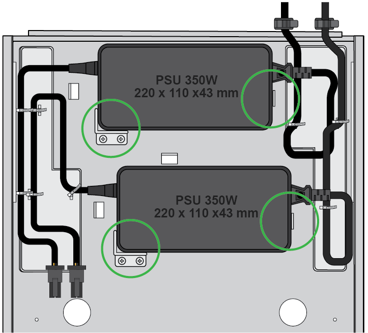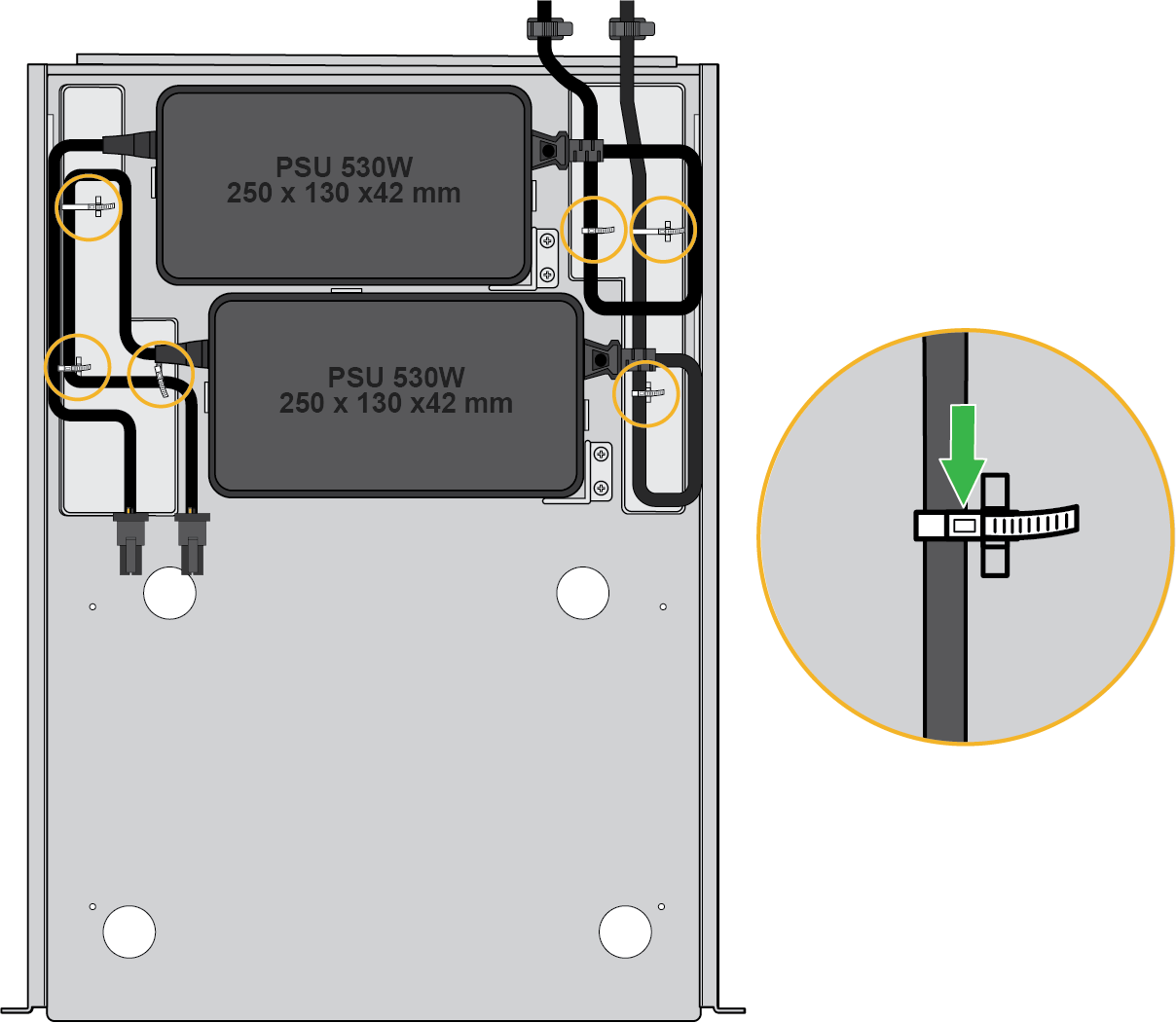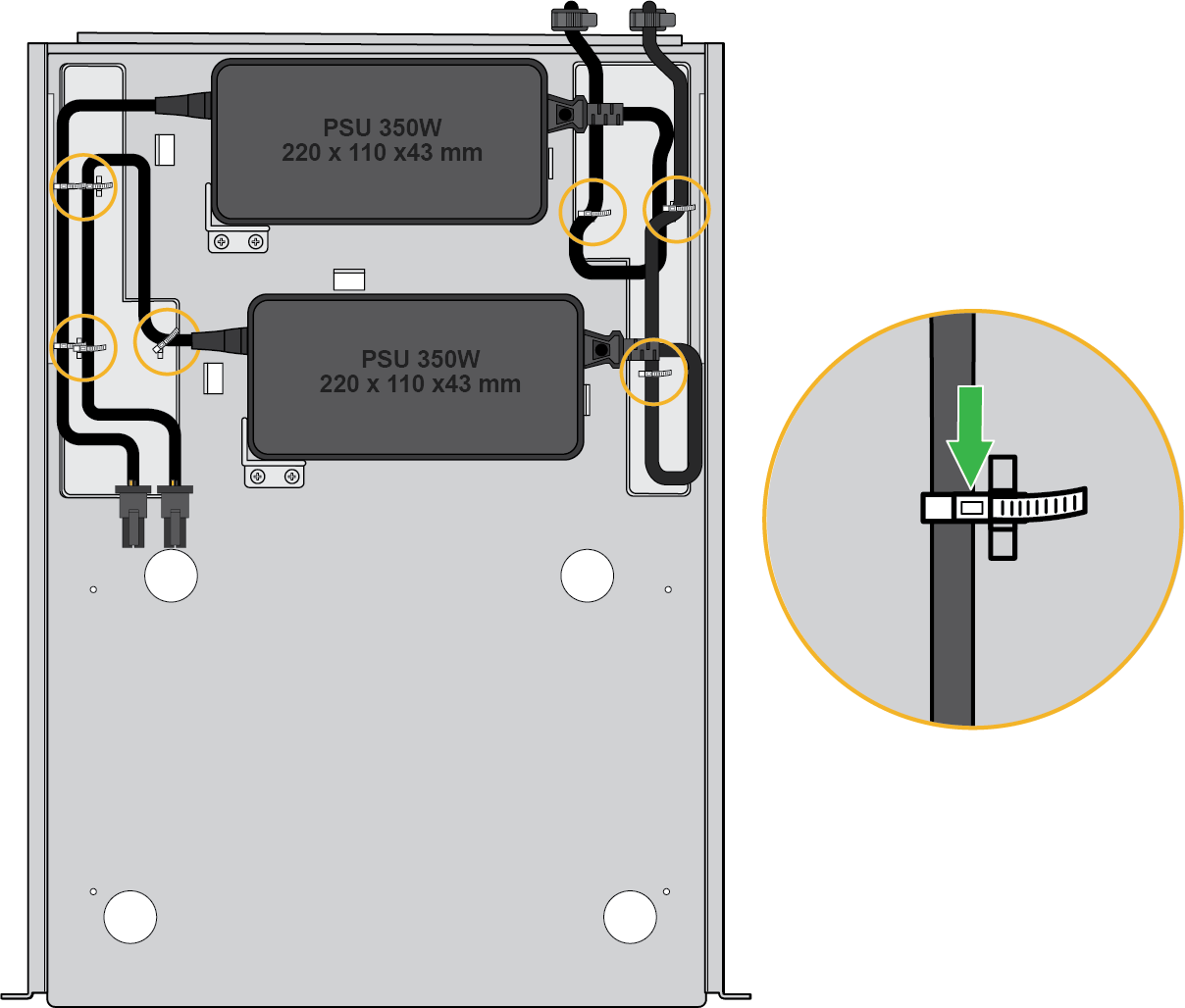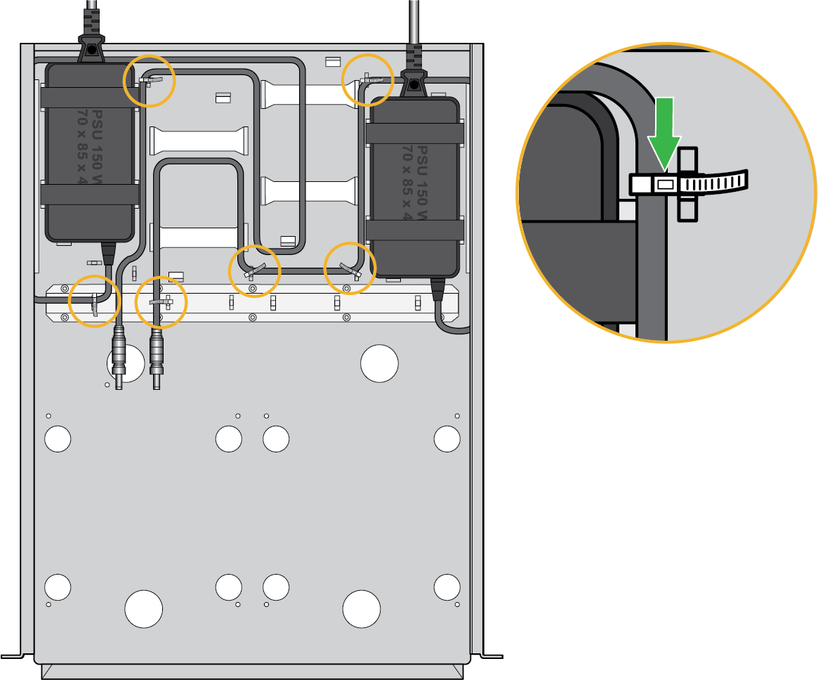 - Place each power adapter into its designated location, then wrap each Velcro strap over the top of the adapter so that the adapter is fixed in place.