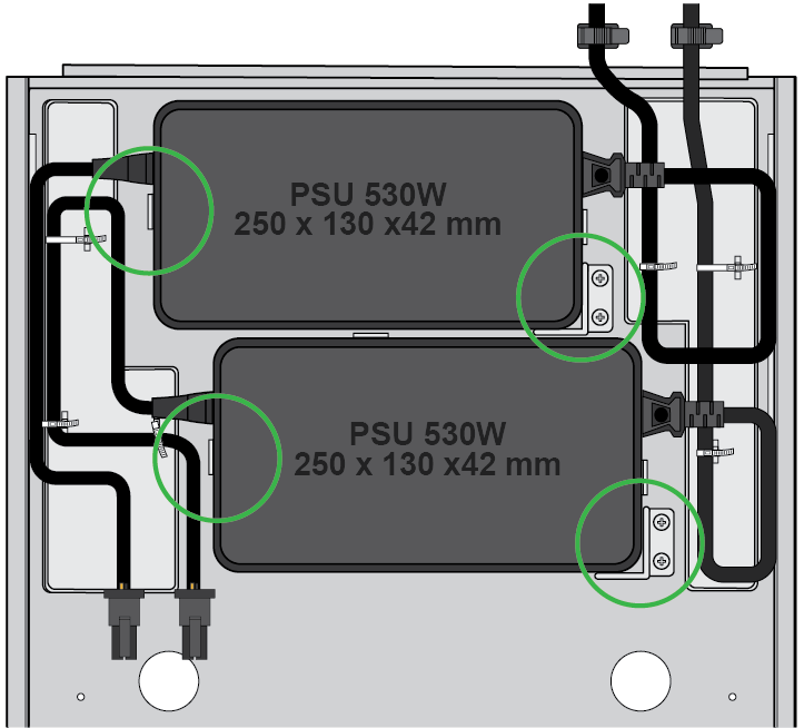 - Secure the power adapter(s) to the mounting tray.PAN-1RU-4POST-RACK-10