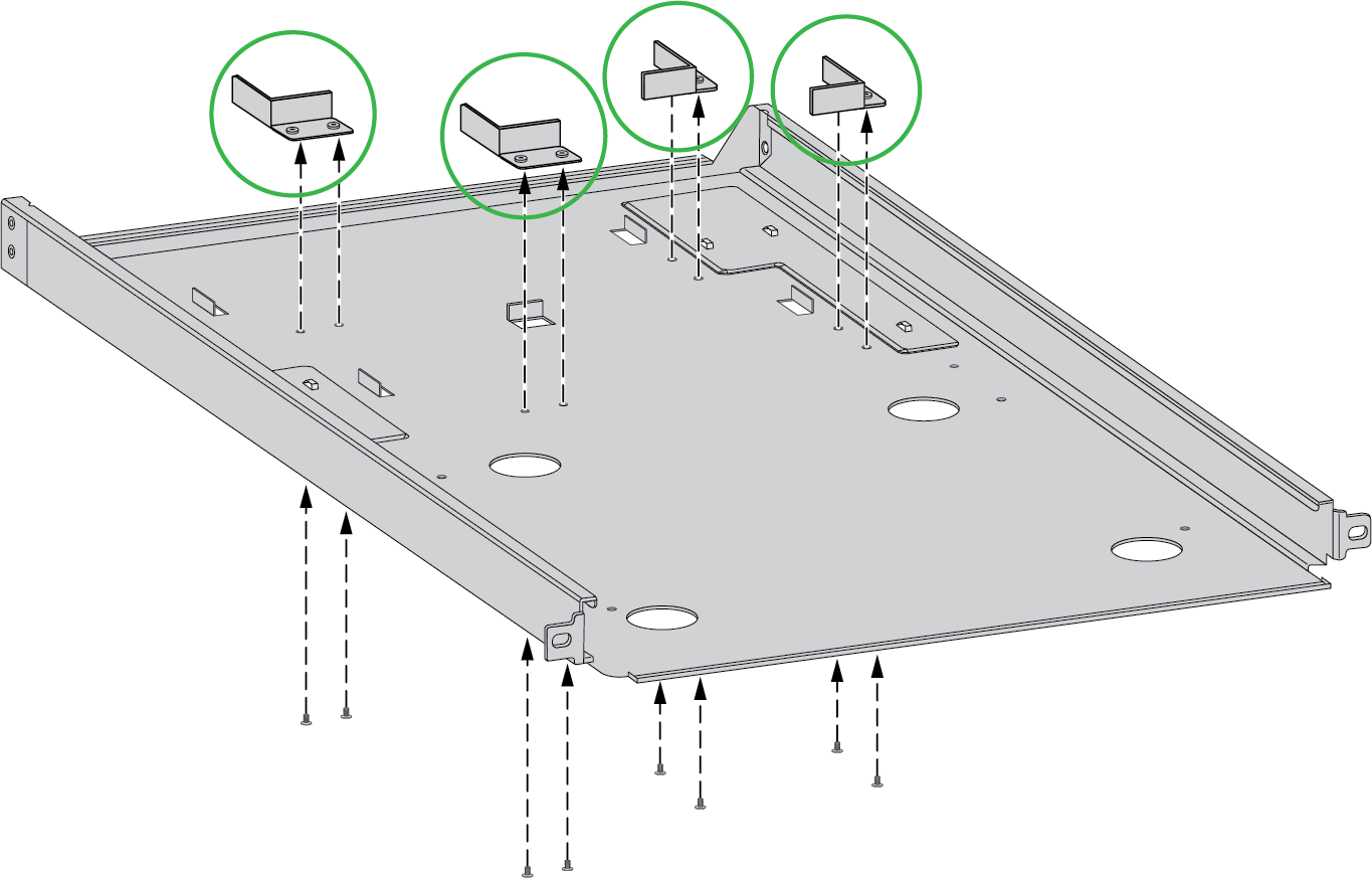 PAN-1RU-4POST-RACK-12- Align the four rubber feet of the device to the mounting tray, then