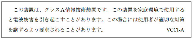 - VCCIThis section provides the compliance statement for the Voluntary Control Council for Interference by Information Technology Equipment (VCCI), which governs radio frequency emissions in Japan.The following information is in accordance to VCCI Class A requirements: