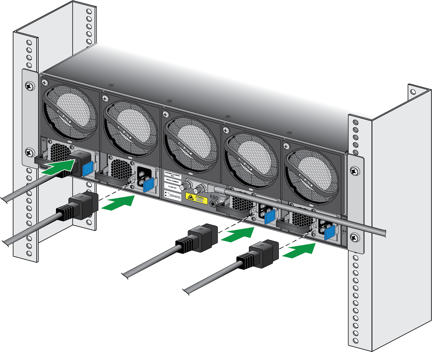 The AC and DC power supplies support two ranges of voltages: low line (90V to 140V)