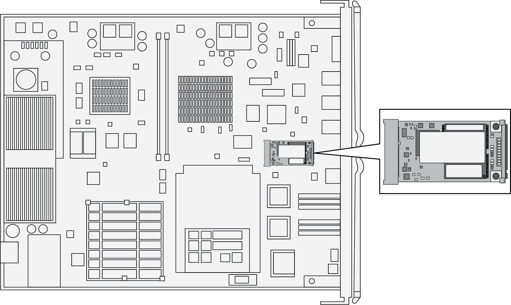 - Put the provided ESD wrist strap on your wrist, ensuring that the metal contact is touching your skin. Attach (snap) one end of the ground cable to the wrist strap and remove the alligator clip from the banana clip on the other end of the ESD grounding cable. Plug the banana clip end into one of the ESD ports located on the front of the chassis before handling ESD sensitive hardware. For details on the ESD port location, see PA-7050 Front Panel (AC) or PA-7080 Front Panel (AC).Before you power off the chassis in the following step, ensure that you have created a backup of your PAN-OS configuration. See Save and Export Firewall Configurations.Power off the chassis. Disconnect the cables connected to the SMC and all power cords plugged into the chassis.Use a #1 or #2 Phillips screwdriver to unscrew the SMC screws at the front of the chassis. On the PA-7050 firewall, the SMC is located in slot 4; on the PA-7080 firewall, the SMC is located in slot 6.Use the card ejector levers adjacent to the SMC screws to release the card. Remove the card and place it on an ESD work surface. Detach your wrist strap’s ground cable from the ESD port on the chassis and securely attach the alligator clip to the new ESD surface.Locate the mSATA.
