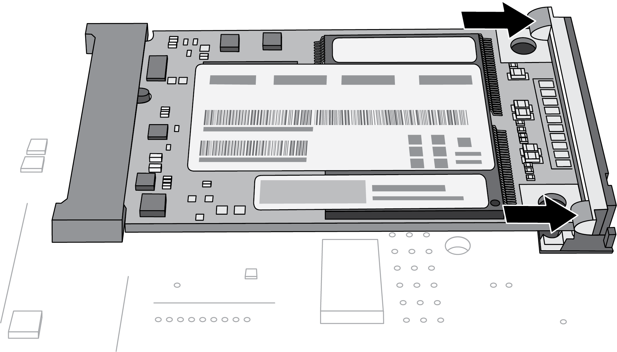 Gently press the two clips to release the mSATA. Once the mSATA pops up, carefully remove it from the socket.