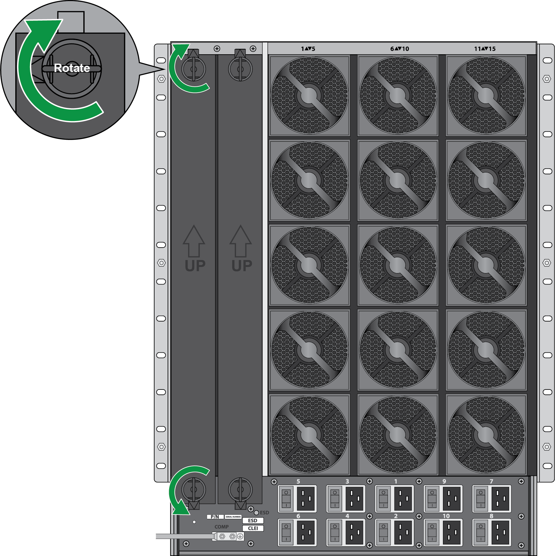 Up to two Switch Fabric Cards (SFC) can be installed on the back of the chassis. The