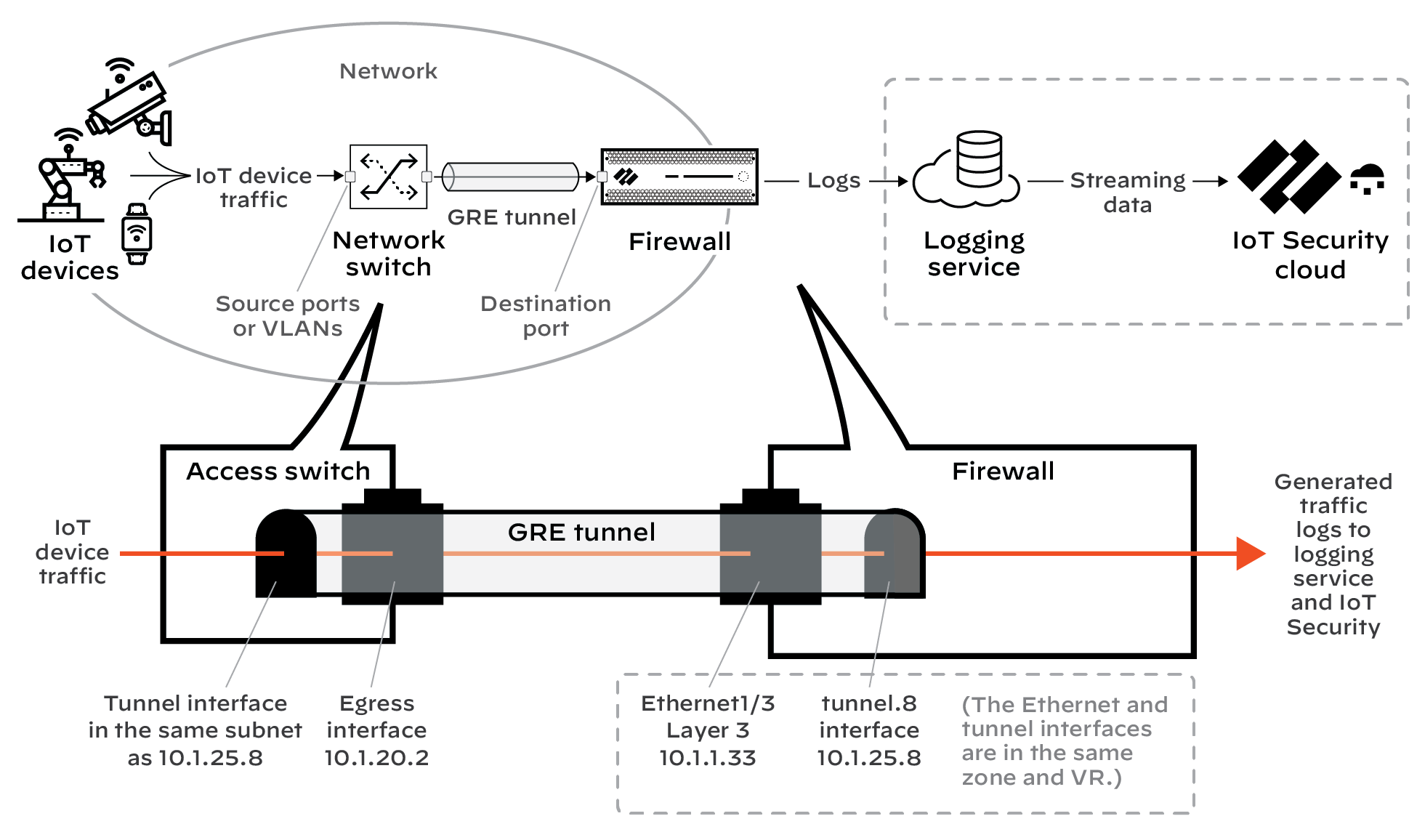 - Configure a switch that supports ERSPAN to mirror traffic on one or more source ports or VLANs, and forward it through a GRE tunnel to a destination port on a next-generation firewall.For configuration instructions, see the Cisco documentation for your switch.Enable ERSPAN support on the firewall.By default, ERSPAN support is disabled.